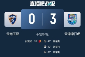 体育资讯4月17日讯 中超第6轮,天津津门虎客场3-0击败云南玉昆,收获赛季首胜。