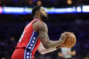 此役,乔治出场36分钟19投9中,三分11中4、罚球5中4拿到26分13篮板2助攻4抢断1盖帽,正负值-5。
